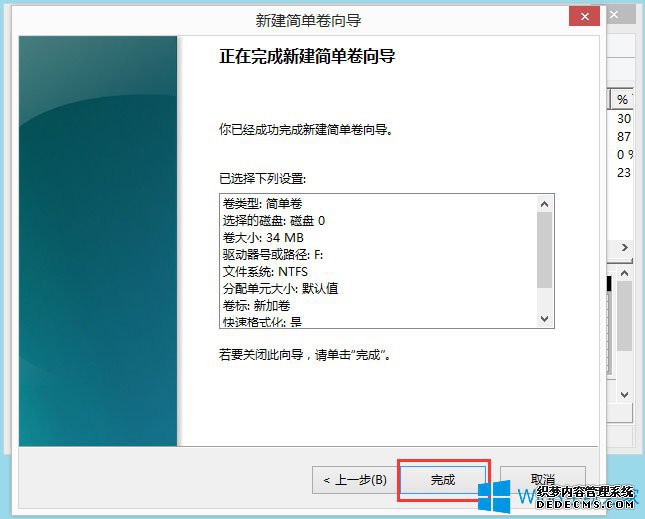 8、点击完成后即可看到已经分出的分区,点击“完成”。