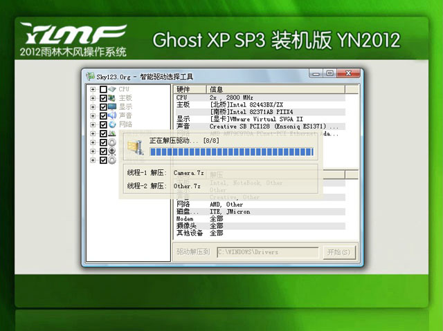 3、智能判断并自动解压硬件驱动,并安装对应的双核补丁、驱动程序及优化程序